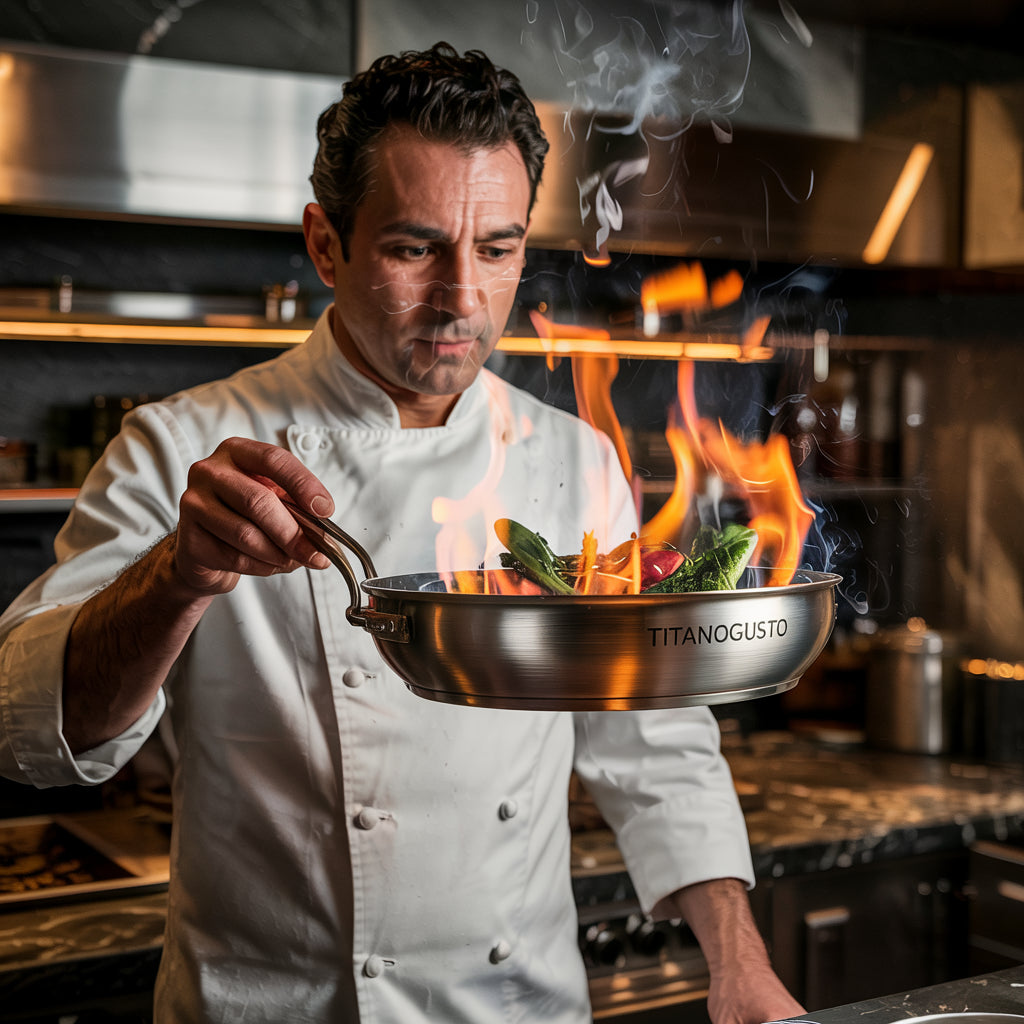I professionisti scelgono il titanio per la sua durata ineguagliabile e la precisione nella cottura. Nessun rivestimento, nessuna tossina, nessun compromesso. Solo prestazioni pure e sicure in ogni piatto.